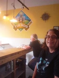 tin_dog_brewingTin Dog Brewing, located in a small industrial park in Seattle’s resurgent South Park neighborhood, does, at least, have the advantage of being, literally, the first thing you come to when you’re entering that cloistered little borough via its main access, Cloverdale Road. Getting lost – as I have a couple of times, in that rabbit’s nest of tiny, narrow streets that honeycomb the old, blue-collar area – is much less of a factor and Tin Dog is actually quite visible from the main road, so we arrived quickly, as opposed to our usual round of MapQuest on the iPad and muffled cursing, to find a very neighborhood-y, casual, comfortable taproom that very much reflects the personalities of its owners, Eric and Lisa Rough (“r-OW”, not “ruff”). As opposed to many brewing newbies who manage start-ups, Tin Dog is a mid-life epiphany that Eric and Lisa stumbled upon due to a re-evaluation of their jobs and the immortal question, “What the F#@K am I doing with my life?” Eric had succumbed to the brewing bug on a foreign exchange trip to Germany in the 80s but had never quite gotten the necessary shove across the threshold of “Goin’ For It”. A layoff from his day job supplied that and a small mechanical dog on their mantelpiece provided the name. And South Park, with its modest rents and slow-paced culture, gave then the place.