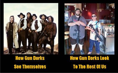 Guns are about Fear. That is the bottom line and the absolutely inarguable fact. Those of us who don’t jump at every shadow, imagine intruders lurking outside our bedroom windows, obsess about that moment when some nameless, shapeless Boogey Man decides to target us and our families as the next random victims of random violence, don’t feel that panicky impulse to Arm Up and Throw Down. We don’t constantly worry that – out of a population of 280,000,000 – the terrorists are looking specifically for us to take hostage and torture in the name of some whack-job ideology. Ask any gun nut and that’s what you’ll get: a litany of those faceless fears, those shadowy suppositions about what could happen…even if they live in a place where those things are so statistically remote that they are, functionally, in NO danger at all.