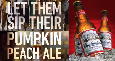 I’m late to the tsunami of derision this ad unleashed against the Bud Collective but I have to say that I’m a little less actively offended by the ad – in the sense of being shocked that it happened – than a lot of people seem to be because, really, it’s nothing new. AB’s entire history is littered with examples of them heaping scorn upon other breweries and, lately, strategies specifically aimed at craft brewing. You’ve probably seen this ad already (if you haven’t, you can watch it below, courtesy of our pals at YouTube) and noted that the main subject of their lofty scorn was the now-infamous “Pumpkin Peach Ale”, which AB spokespuppet, Brian Perkins called “a fabricated, ludicrous flavor combination.” Apparently, Perky was unaware that this very beer – augmented with the even more ludicrous addition of some toasted pecans – was made recently. It was called “Gourdia on My Mind“. The producer was Elysian Brewing…which Perkins’ own employer now owns.