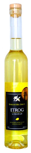 All that is just preamble. Let me say this flat-out: Sukkah Hill “Etrog” and Sukkah Hill “Besamim”, their brilliant vanilla/cinnamon/spice liqueur, are the absolute best of their types that I have ever tasted. A bottle of very good Itailan Lemoncello comes off like weak lemonade when tasted A-B with Etrog. Vivid notes of LemonHead candy, lime leaf, verbena, white pepper, faint nutmeg, and vanilla pounce on the tongue like a panther on a fresh-cut steak. There is subtlety within the flavor profile but not in the delivery. Etrog is a sweet, spicy, complex slap in the mouth, and a wonderfully sweet pain it is. The actual sugar level is moderate, so Etrog doesn’t take over when used as a mixer but it does make its presence known. By itself, with maybe two rocks in the glass, it’s downright spiritual; an illuminating confrontation with any of those pallid ideas of liqueurs that, like me, you have in the back of your head. Let’s be honest: MOST liqueurs are so dumbed down by the time you’re able to find them in general circulation – nibbled to death by regulations and efficiency “experts” and lawyers and corporate second-guessing – that what arrives at your house really needs the intervention of a good vodka or tonic or fruit juices or another mixer to get interesting. Both Etrog and its newer sister, Besamim, mix admirably, but both can and should be sipped either out of the freezer, on the rocks, or just as-is. They withstand close scrutiny as well as any liqueurs I’ve ever found and remain interesting and compelling over the long haul.