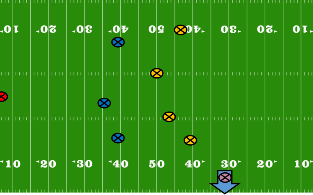 The new field with four-on-four (Returner in red. Kicker leaves after kick-off)