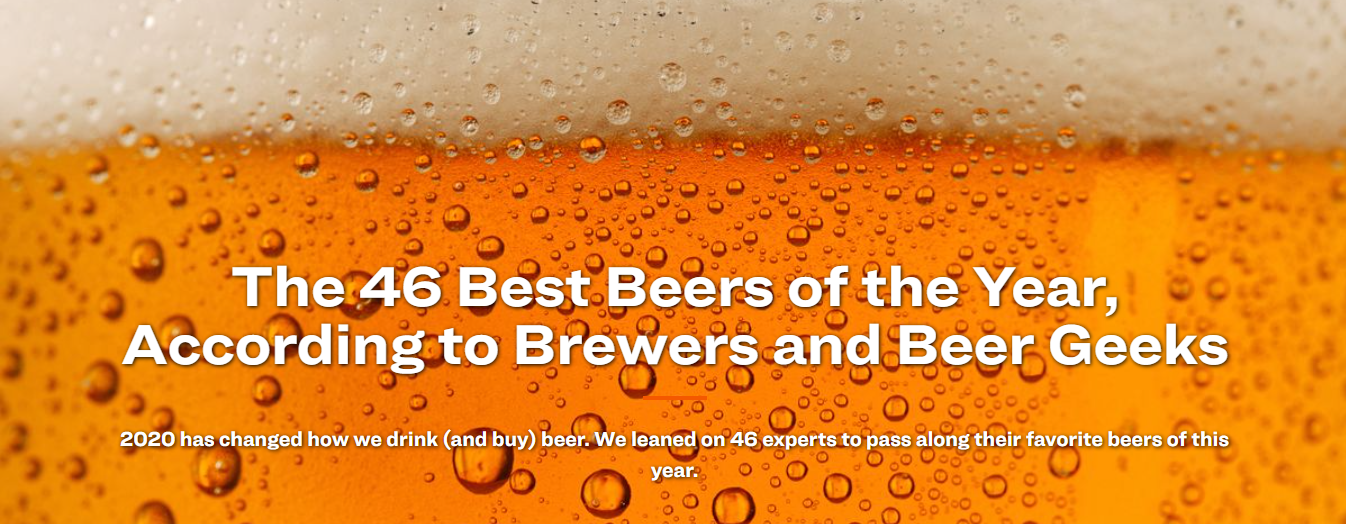 This is a list of 45 beers and that one errant cider that are the momentary favorites, as of the day these folks were asked, off the top of minds that are beer-saturated daily. Ask these same folks tomorrow or next week and they may well name different beers. Ask 46 other beer-savvy tradespeople and you’d almost certainly get 46 different responses. But you are handed the unsupported notion that, out of all the hundreds of thousands of beers made in 2020, these were the “best”. No qualifier was given. But in the mouse-type below the title, the title is undone…AFTER you are already on the page, as seduced in by “The 46 Best Beers of 2020”. Just below the headline, there is this: “we leaned on 46 experts to pass along their favorite beers of this year.” There ya go: honesty. But, of course, you’re already on Gear Patrol and, if your reading habits online are like most of us, that subhead will either go unread or be skimmed without sinking in.