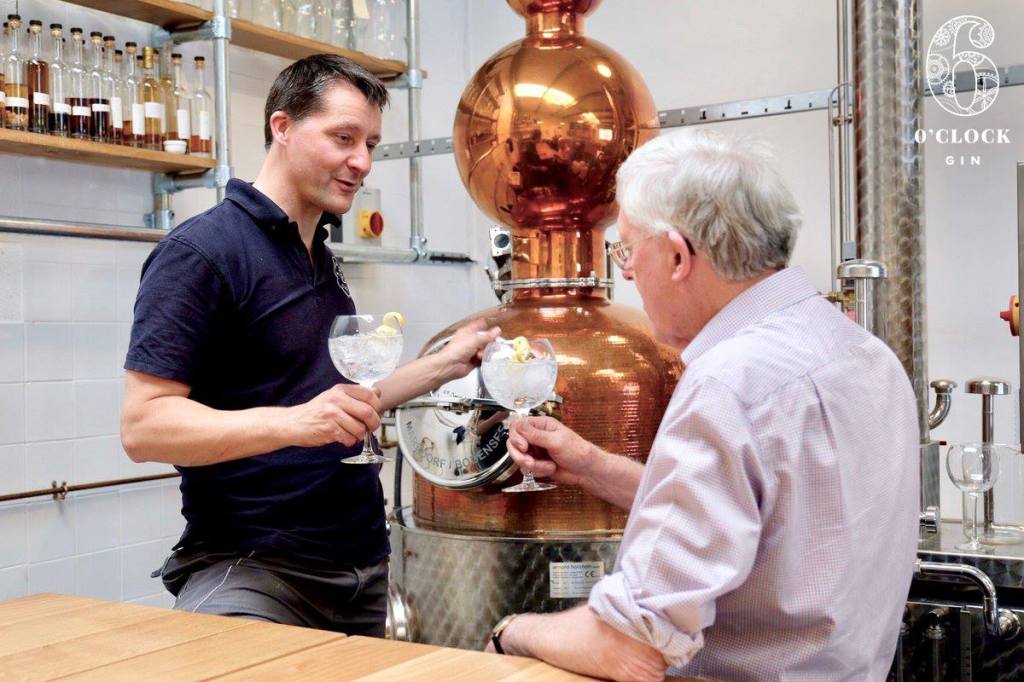 Some years later, Michael and Felicity took over their parents’ now prosperous distillery. Guided by the family expertise in liqueurs, they set about perfecting the gin recipe. The wonderful flavour of 6 O’clock Gin emerged through experimentation: carefully selected botanicals, precisely balanced for a refreshingly clean taste.”