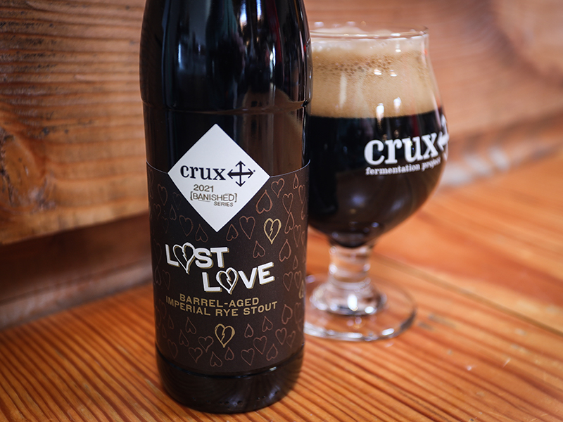 Lost Love Barrel-Aged Imperial Rye Stout is a ridiculously inspired variant of Crux’s becoming-immortal Tough Love Imperial Stout, banished to a bunch of Woodford Reserve Rye Whiskey barrels to reconsider its place in the universe. Apparently, it has decided to be jaw-dropping delicious because this unhinged my mandible and caused me to have to tote it around in a fanny pack for several hours. All the sinister opulence of Tough Love is there in spades, given some mellowing time in barrel. This, from my review of the base ale, says what applies to the non-Woodford Stout: