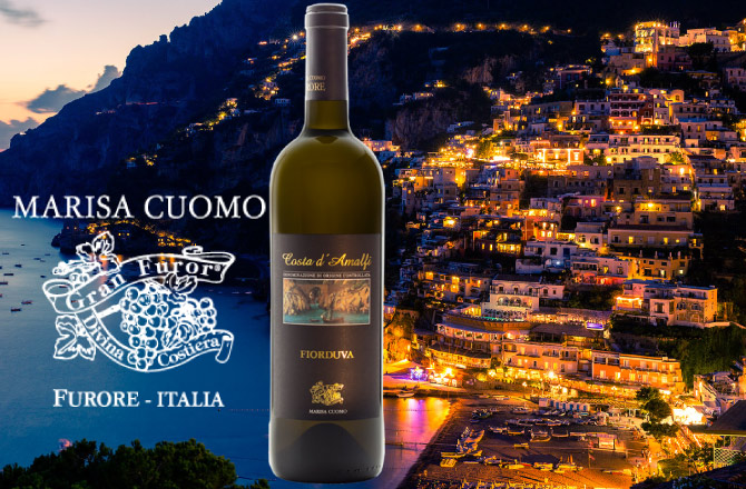 “Furore Bianco Fiorduva is the magnificent result of the undoubted experience of Marisa Cuomo in the art of winemaking. Three grapes combine to create such a masterpiece, Fenile, Ginestra and Ripoli, hand-picked to preserve the precious organoleptic characteristics together create a precious nectar with golden shade that gives the eye a joyful representation of the sun kissing the Amalfi Coast. Here is where Marisa Cuomo grows her vines, caressed by the wind enriched by the perfumes of the Mediterranean Sea, where the grapes are enhanced by voluptuous and fresh shades that can be found in tasting. Enchant your senses with fine veins of sweet ripe apricot, combined with the sensual scents of broom that makes you desire to drink it on a terrace of the Amalfi Coast. In tasting it discovers a golden world of a unique fullness. The complexity of perfumes gives romantic and tasty sips, ending with a special smoothness with which the Furore Bianco Fiorduva of Marisa Cuomo caresses the palate. It leaves us breathless, thinking on the plurality of expression with which the Fiorduva describes the terroir of Furore, dominated by the influence of the Tyrrhenian Sea easily revealing brackish and fresh shades. A great wine that make us fall in love with the native grapes of the Amalfi Coast and expressing their full potential with aging. The Furore Bianco Fiorduva of Marisa Cuomo winery is truly a golden masterpiece.“
