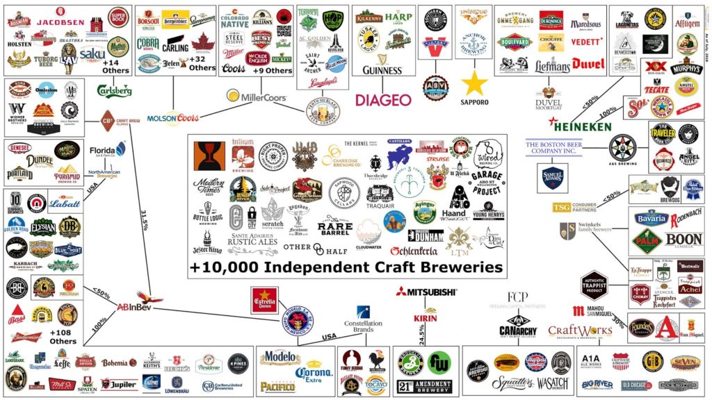 In this massive chart – which is admittedly out of date now – I went through and counted all those breweries which used to fall under the loose definition of “US Craft Beer”. I tossed out brands like Labatt’s and Steel Reserve and Affligem and Duvel because they are not US craft breweries. I came out with 60 names. So, let’s say that this list needs a real update and extrapolate out that there are now 25% more names that belong. That is seventy-five breweries sold. Out of the 10,000 currently in operation. And let’s say that the pandemic and its after-effects killed off another thousand. That’s 9,000 breweries. 75, as a percentage of 9,000 is…, ta-da: .08%. Less than 1% of American breweries are in real danger of failure. But let’s be generous to the doomsayers. Let’s say there are now 100 breweries sold out to corporate interests. Let’s say that TWO thousand failed after Covid. Now, that is 100 as a percentage of 8,000, which is…1.25%.