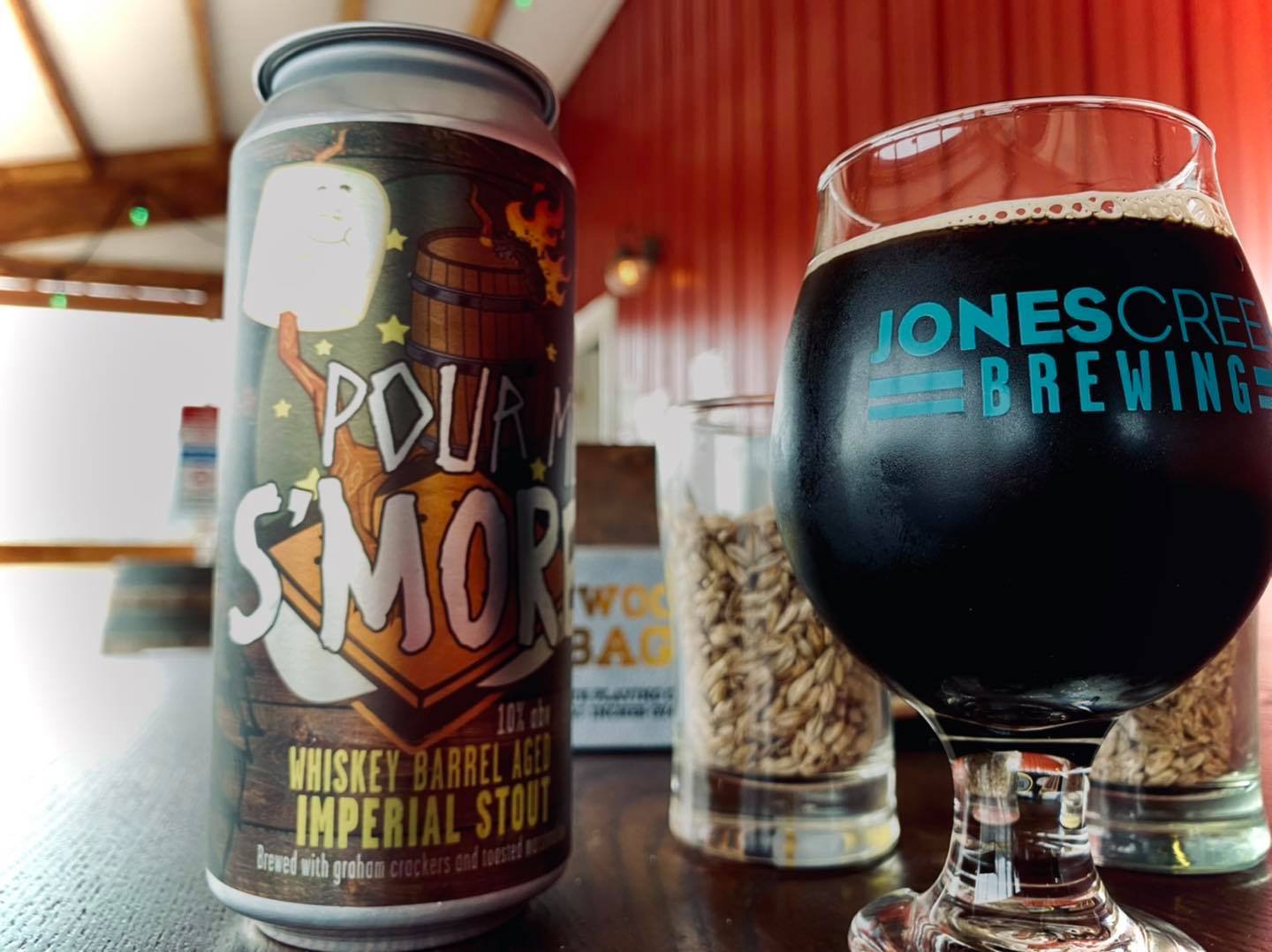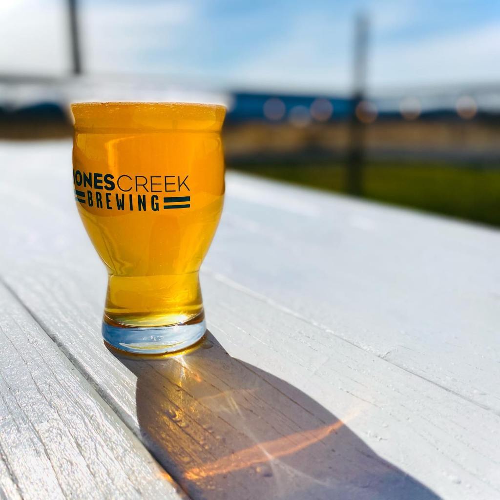 It was a struggle but, here we come in late spring of ’23 and we actually find Jones Creek Brewing (no small trick, that) quite clearly Open and get a 4-beer sampler which knocked us both sideways.