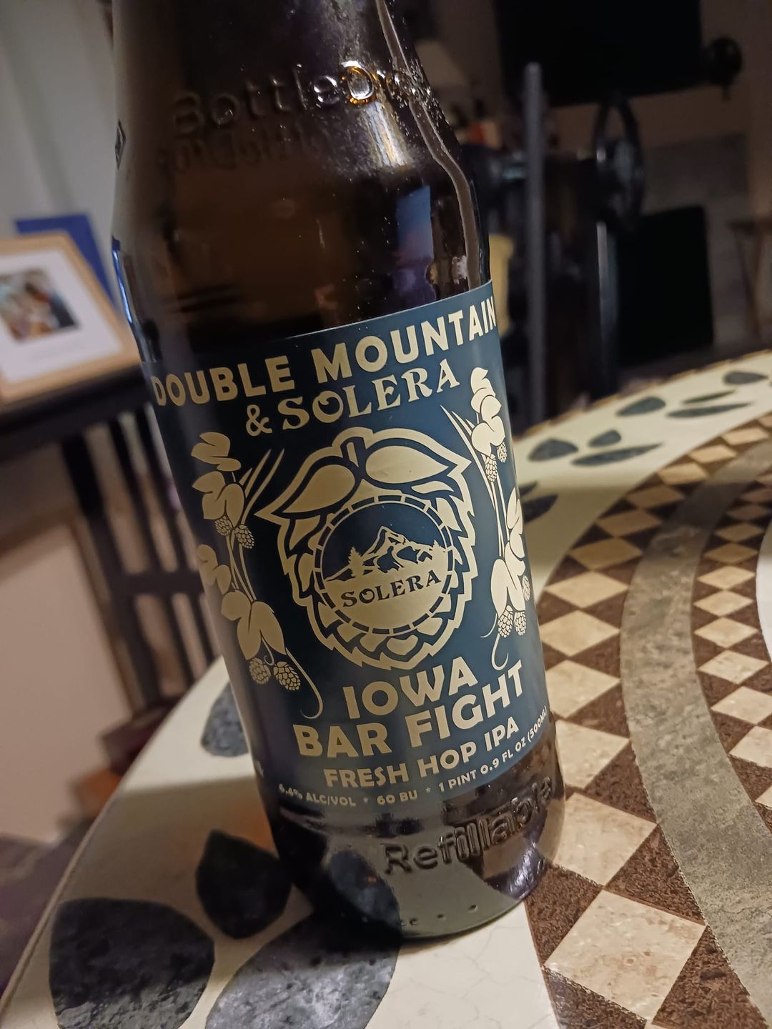 Here’s my bottom line on the new “Iowa Bar Fight” Fresh Hop IPA from Double Mountain Brewery and Solera Brewery of Hood River, Oregon…